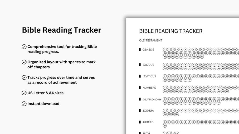 - 1 Letter size Bible reading tracker Printable ( 5 page PDF Document)