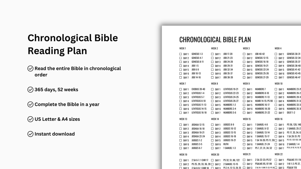 - 1 Letter size Chronological Bible Plan Printable ( 3 page PDF Document)